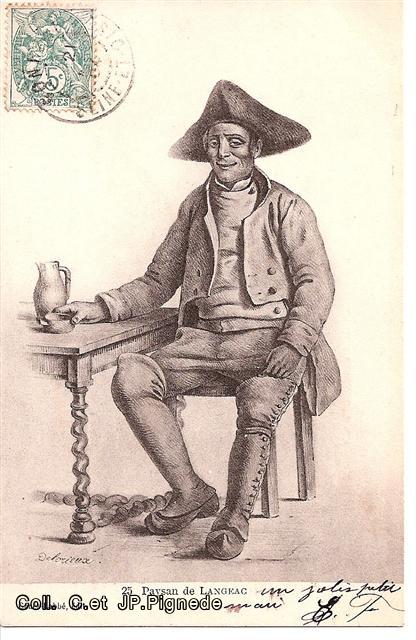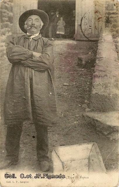 Costumes de pays Le costume typique du paysan langeadois pour se rendre au marché, blouse noire et chapeau feutre noir. La pipe est accessoire, comme l’était la canne.