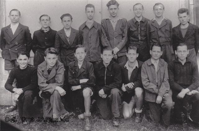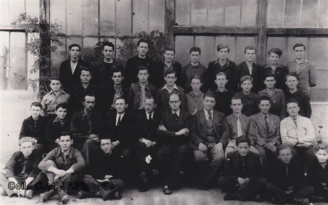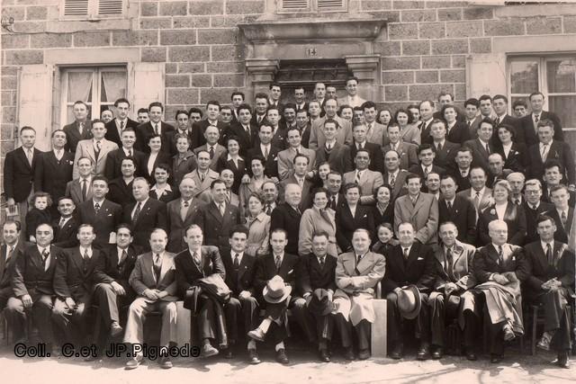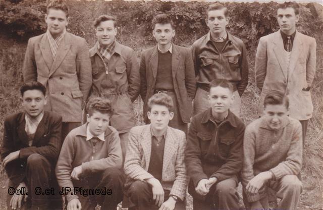 Au premier rang tournant légèrement la tête sur sa droite: Mr Sylvain Marcon qui plus tard fut greffier de justice de paix à Langeac. A droite en blouson blanc: Mr Robert Tardieu.