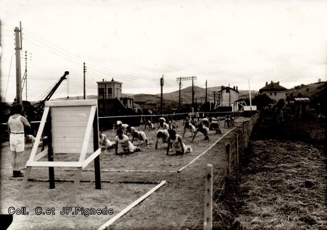 La première photo concerne bien les élèves faisant du sport sur le petit terrain derrière la rotonde. Les deux autres ont été prise à l’Ile d’Amour, avec un groupe plus important. Peut être lors d’une manifestation réunissant plusieurs associations gymniques ?