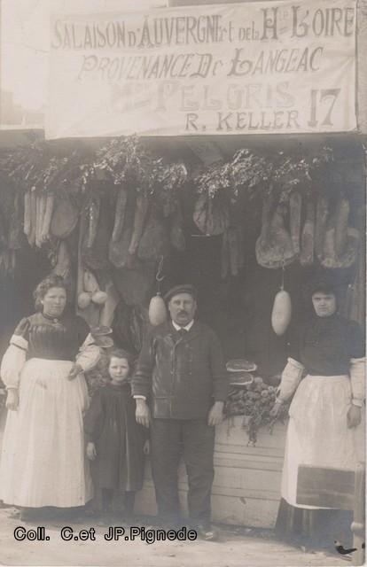 Cette carte photo n’est pas située. Elle est oblitérée à Paris! La charcuterie exposée vient de Langeac, de la charcuterie Pelgris. Cette charcuterie existait bien à Langeac en 1906.