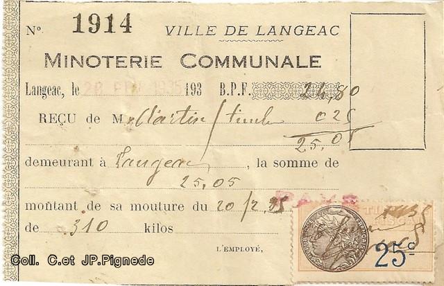 Il existait à Langeac une minoterie communale! Ultérieurement a-t-elle changée de nom pour devenir la minoterie Pascal, sise au moulin de l’Ile d’Amour.