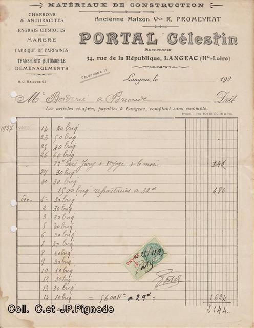 A défaut de carte, une facture nous apprends l’existence d’un deuxième commerce de matériaux et charbons, donc concurrent de la maison Patier.
