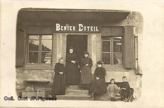 Devant la boutique Mme Fustier et probablement son fils Jean (à confirmer)