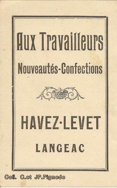 C’était de tradition familiale de faire de la « réclame ». Robert Havez, gendre de H. Levet, qui ayant repris le commerce avec son épouse, fille de Mr Levet, a fait imprimer des cartes « publicitaires ».