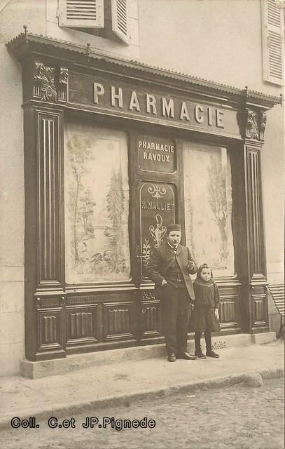 Devant la pharmacie Mr Maillet tient sa fille par la main. Cette dernière épousera plus tard Mr Valour, père de Mr Robert Valour!. Celui ci plus tard publiera son almanach.