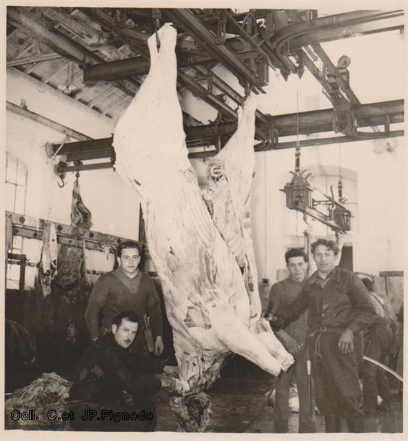 Dans les années 50/60 c’était de vrais abattoirs qui traitaient un volume important. Je me souviens d’épisodes cocasses, mais dangereux, quand un taureau excité par l’odeur du sang devenait fou furieux et se sauvait. Il fallait vite fermer le portail pour qu’il reste dans l’enceinte. Généralement cela se terminait par un abatage au « Lebel » ou au « MAS 36 ». Le tireur montait dans un fourgon, on ouvrait rapidement le portail, puis le conducteur recherchait l’animal. Il ne restait plus au tireur que de le foudroyer de très près.