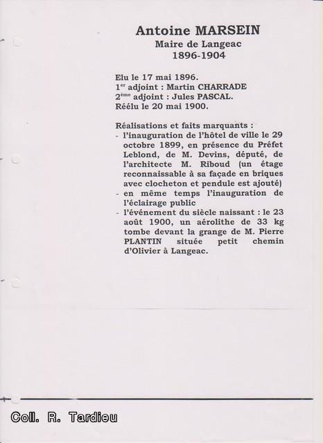 Dans les archives de Robert Tardieu j’ai trouvé quelques fiches récapitulant l’action de certains maires de Langeac. C’est incomplet mais !