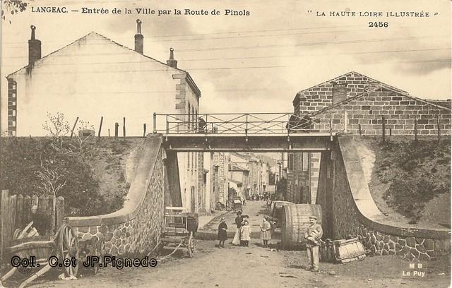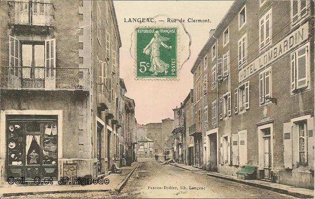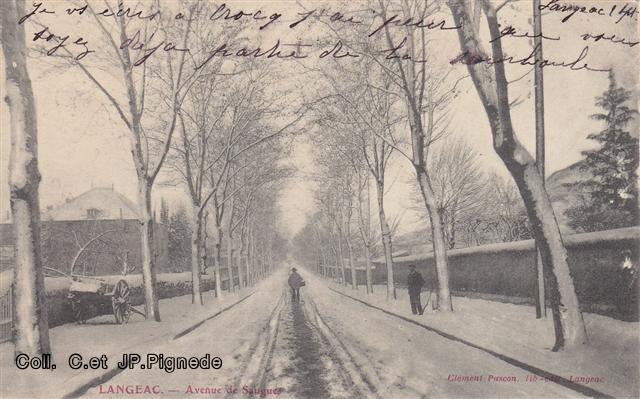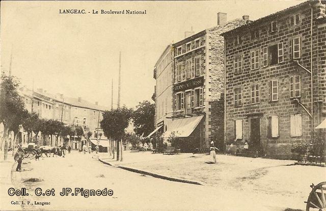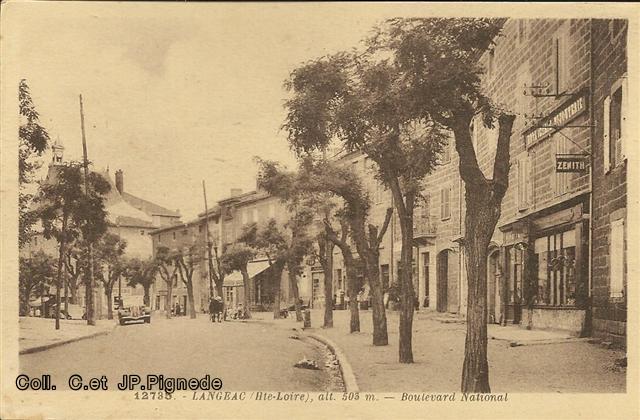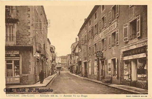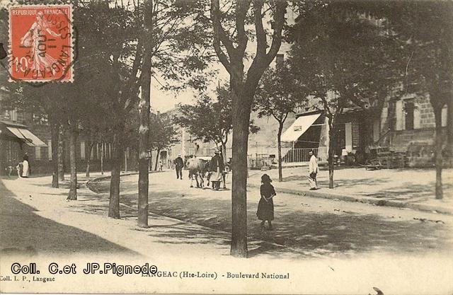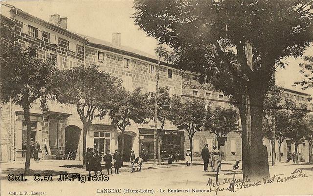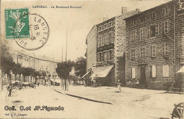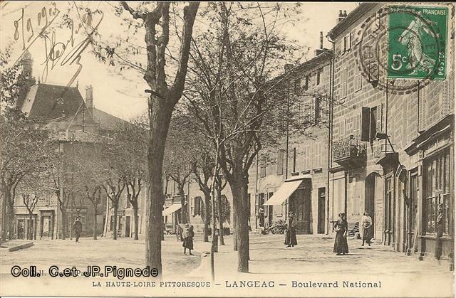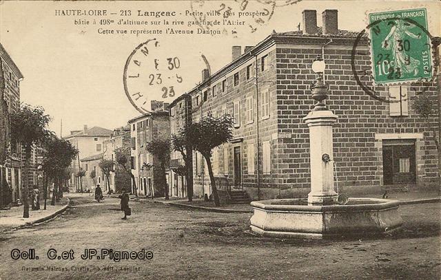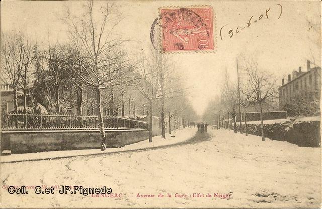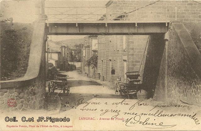 L’avenue de la gare est née avec l’arrivée du chemin de fer à Langeac, donc vers 1865-1866. C’est la compagnie du P.L.M. qui a fait construire à ses frais la liaison de la gare avec la route de Brioude. Les clichés ci-dessus, original à droite et retirage daté de 1904 sont les plus anciens que je connais. La photo est très certainement antérieure à 1900. On constate à quelle vitesse en 30 ans, l’avenue a été construite.