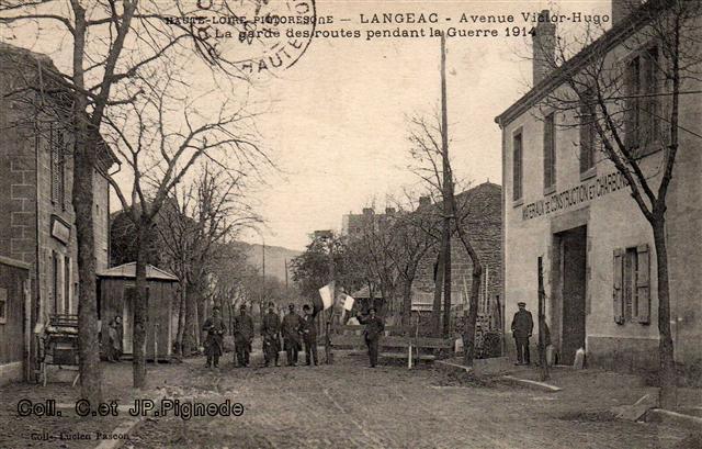 La déclaration de guerre date du 3 août 1914. Donc Langeac dû mettre en place ses gardes dès le 2 août. C’est comme cela que le 6 août suite à une mauvaise information les G.V.C. langeadois arrêtèrent deux véhicules et leurs occupants qu’ils avaient pris pour des « boches ». Conduit manu militari à la mairie, il fallu se rendre à l’évidence, ce n’était pas des allemands, mais des hauts fonctionnaires français qui regagnaient précipitamment leur poste en Afrique du Nord.